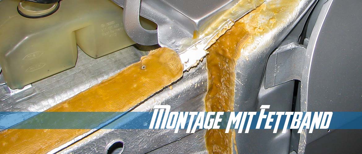 Wir arbeiten mit dem Marktführer Mike Sanders Karosseriefett, das wir nach Vorschrift in alle gefährdeten Bereiche des Fahrzeuges auftragen. Auf Wunsch legen wir auch zwischen Schraubverbindungen, wie beispielsweise geschraubte Kotflügel Mike Sanders Fettband, dass es auch hier zu keiner Wasseransammlung und so zu Rost kommen kann.